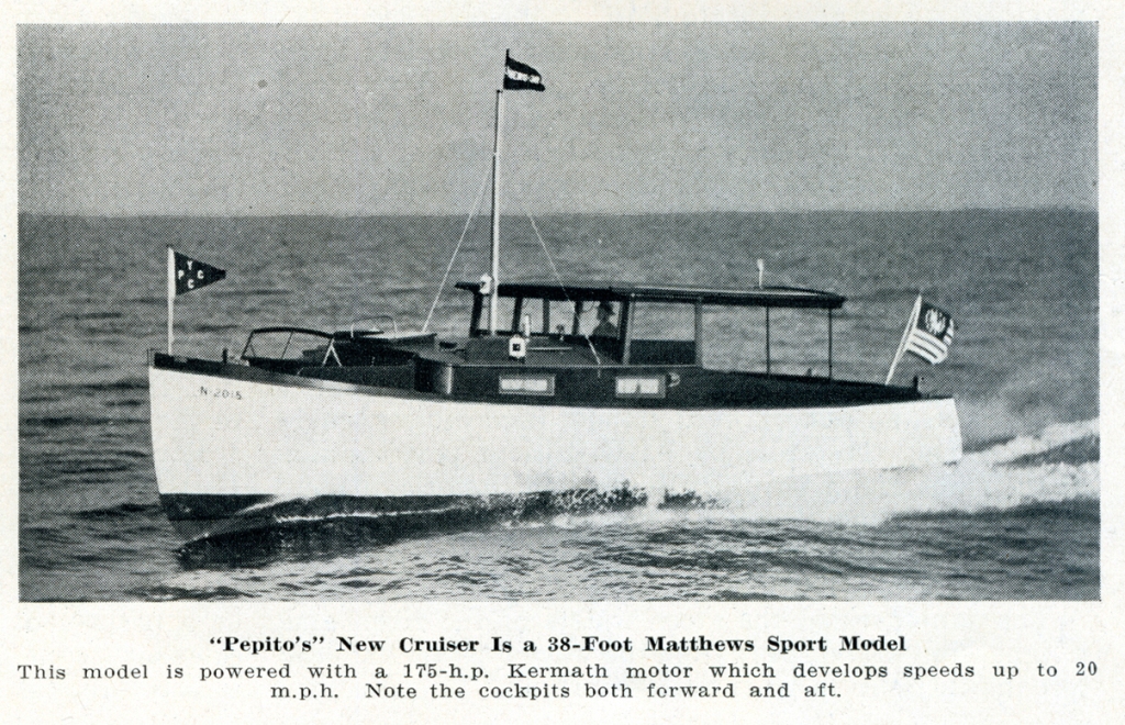 It was while Pepito was on tour in the Middle West that he dropped off at The Matthews Company plant in Port Clinton, Ohio, to inspect the boat he had ordered. With him were Mr. and Mrs. Sam White of Ziegfield Follies fame, who go under the name of Puck and White on the stage.