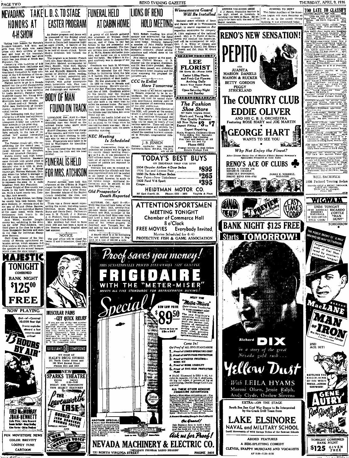 Reno Evening Gazette, April 9, 1936, Page 2.