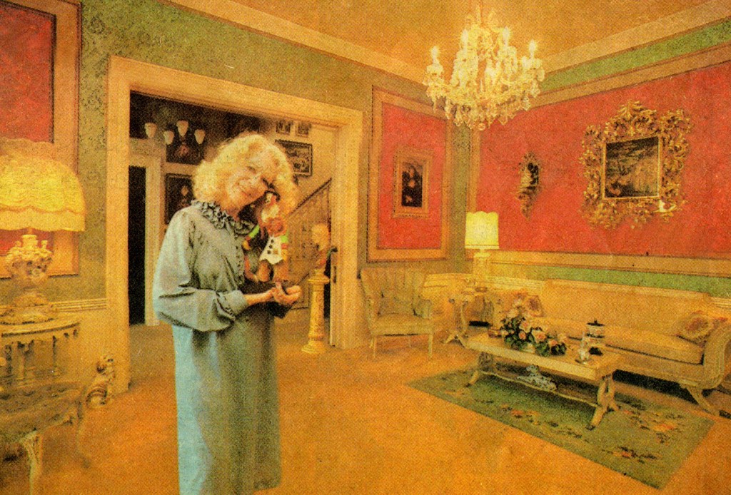 Inside, sitting lightly on an antique pink sofa is Joanne Perez, a former vaudeville star. She seems to be in a glamorous world of her own.