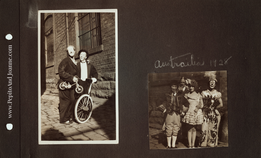 Thanks to their new William Morris agent, Pepito and Joanne were booked on a prestigious six-month tour on the Tivoli Vaudeville Circuit in Australia. They packed up their crates of backdrops, stage props, their miniature automobile, and their menagerie of trained animals, and sailed by ship to The Down Under. Scrapbook page courtesy of Marivi Escobar Santo Tomas.