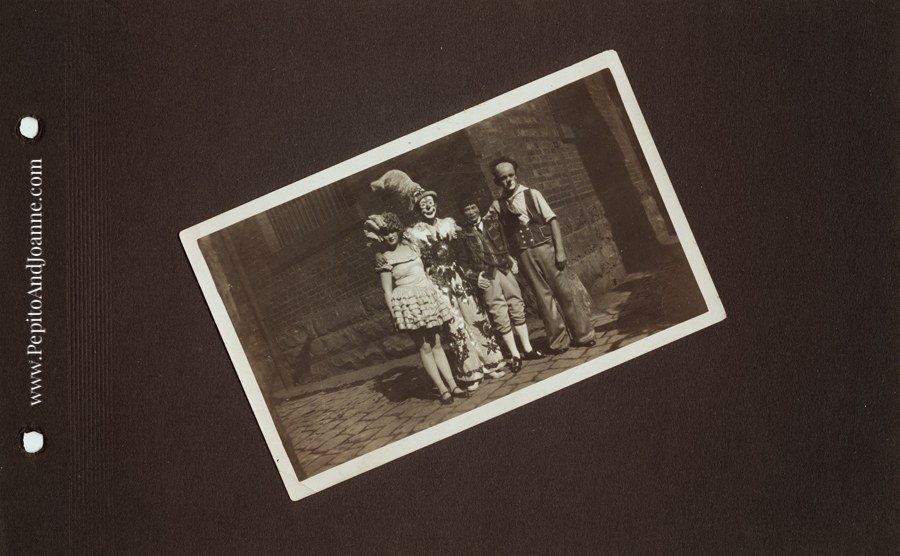 Joanne sewed herself an eye-popping tight skirt, held up with a sexy belt that revealed the curves of her hips, and a bolero-style top made of see-through mesh, ruffles, and strategically-placed sequins. Joanne danced and sang all day with Pepito, outdoors in the Italian Village section of the Fair.