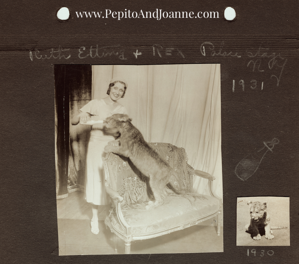 1931 – World-Famous Top-Selling Vocalist Ruth Etting, Bottle-Feeding One of Pepito and Joanne’s Lion Cubs, Backstage at The Palace Theater