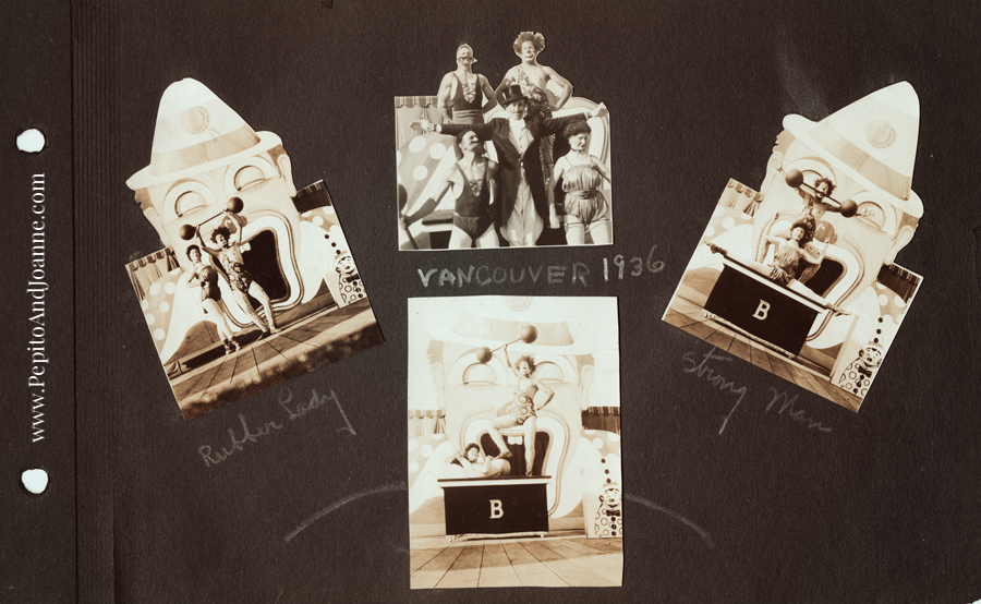 1936 – Pepito and Joanne as the “Rubber Lady” and “Strong Man” in their “Circus Follies” Show at the Vancouver Exposition